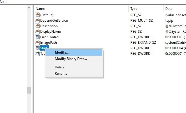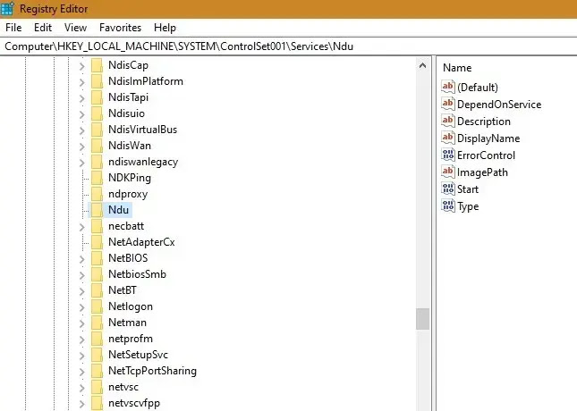 الآن ، انتقل إلى المسار الموضح أدناه وحدد NDU (استخدام تشخيص الشبكة).