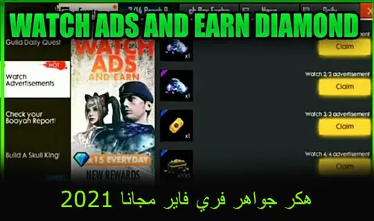 6-شاهد الإعلانات للحصول على جواهر مجانية في لعبة فري فاير:
