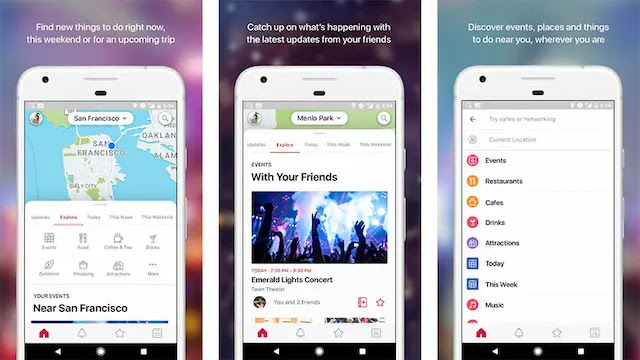 - يمكنك التعرف على أحدث النشاطات والمناسبات والأماكن التي يتفاعل معها أصدقاؤك ومعرفة آخر التحديثات من مستضيفي المناسبات والصفحات التي تتابعها.