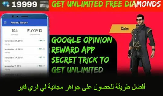 1-الحصول على جواهر مجانية في فري فاير Google Opinion Reward: