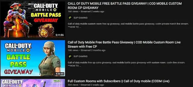 هذه هي ثاني أفضل طريقة شرعية للحصول على CP مجاني في Call Of Duty Mobile. تعد المشاركة في الهدايا مهمة للغاية إذا كنت بحاجة إلى برنامج CP مجاني. هناك العديد من صفحات Instagram ومنشئي YouTube الذين يقدمون هدايا يومية. تقدم هذه الهبات للاعبين CP مجاني أو تمريرة معركة. هذا جيد جدا. ومع ذلك، يجب أن تكون سريعًا جدًا في الاستجابة وأن تظل على أهبة الاستعداد لهذا الأمر. أيضًا، إذا كنت محظوظًا بما فيه الكفاية، فسيتم اختيارك على أساس عشوائي.
