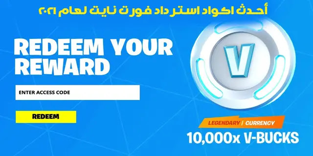 تذكر:- يمكن استرداد الكود حتى 1000 مرة (V-Bucks مجانا).