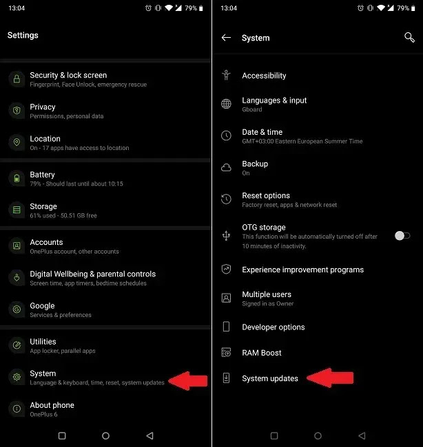 طريقة أخرى لحل مشكلة تطبيق أندرويد لا يعمل هو تحديث النظام الخاص بك. يتم تنبيه المستخدمين عبر إشعار عندما يكون OTA متاحًا للتنزيل والتثبيت، ولكن في بعض الأحيان، لأي سبب من الأسباب، نقوم بتحنني عملية الترقية وننسى كل شيء عنها.