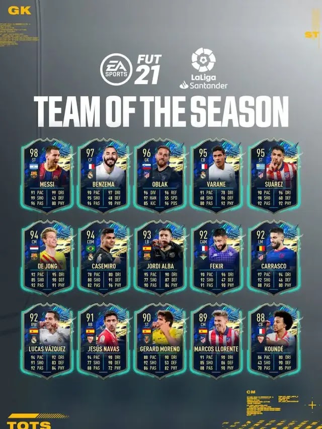 ظهر ميسي نجم نادي برشلونة في تشكيلة دوري La Liga TOTS مرة أخرى في FIFA 21 Ultimate Team، بعد حملة استثنائية أخرى سجل فيها الأرجنتيني 28 هدفًا وسجل تسع تمريرات حاسمة في 32 مباراة فقط حتى الآن في هذه الحملة.