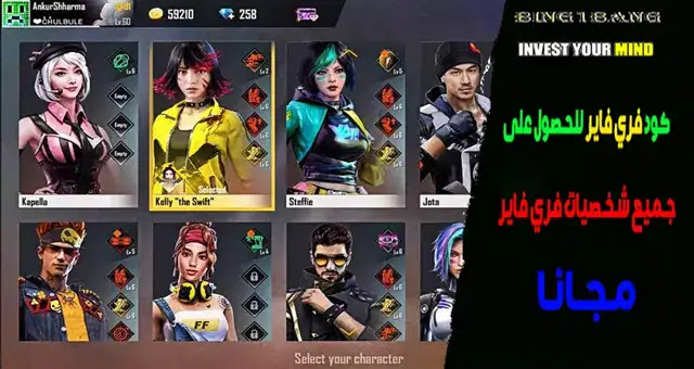 | كود فري فاير للحصول على جميع شخصيات فري فاير مجانا |