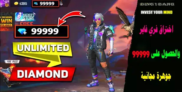 - فري فاير 99999 Diamonds مجانًا.