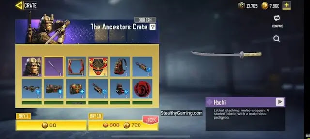 إذن، السؤال هو كيفية الحصول على سيف Hachi في COD Mobile؟ في السابق، يمكن الحصول على Hachi Katana من الصناديق المفتوحة. كان متاحًا في Ancestors Crate of Season 6 عندما تم إطلاق السيف لأول مرة في اللعبة. إذا كنت تريد Hachi في ذلك الوقت، فسيتعين عليك توفير CP لشراء الصناديق وترغب في الأفضل!