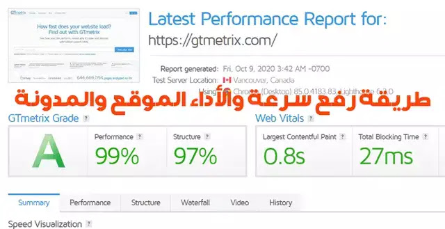 طريقة اختبار أداء موقعك في أداة GTmetrix