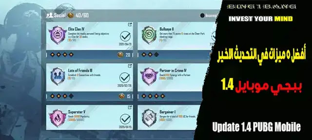 قام مطورو PUBG Mobile بتحسين واجهة مستخدم Achievement للعبة. هناك الكثير من الإنجازات التي تم التخلص منها من اللعبة. أيضًا، يمكن للاعبين التنافس مع أصدقائهم في لعبة تنافسية للحصول على المزيد من نقاط الإنجاز في اللعبة.