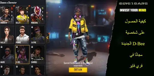 لعبة Free Fire هي لعبة باتل رويال شهيرة ومحبوبة بشكل كبير حول العالم، وتقدم العديد من الشخصيات المميزة التي يمكن للاعبين استخدامها أثناء اللعب. ومن بين هذه الشخصيات توجد شخصية D-Bee التي تعتبر واحدة من أكثر الشخصيات المرغوبة في اللعبة، والتي يمكن للمستخدمين الحصول عليها بشكل مجاني.