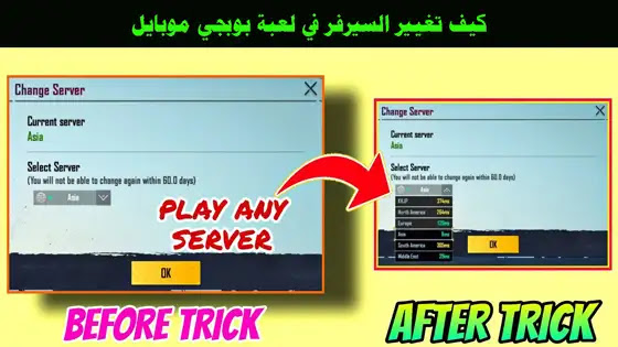 كيفية تغيير السيرفر بدون VPN في ببجي موبايل؟