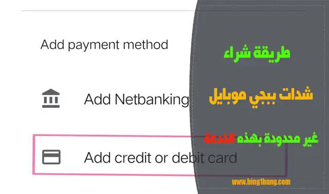- ثم انقر فوق خيار "إضافة طريقة دفع" وأدخل تفاصيل شدات ببجي موبايل التي اشتريتها.