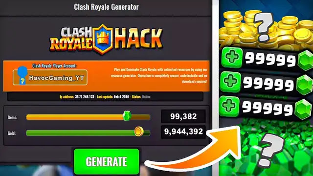 مختلف المستخدمين من مجتمع Clash Royale لقد حرصوا على العثور على مولدات جواهر كلاش رويال لهذه اللعبة المذهلة، بحيث يمكنك التقدم بشكل أسرع دون استخدام غش أخرى ويمكن اكتشافها بسهولة بواسطة Supercell. عادةً ما يتم استخدام المولدات على جهاز كمبيوتر بدلاً من جهاز محمول، لأنها تعمل بشكل أفضل ولا تمنع لعبتك. يمكنك، باستخدام جهاز كمبيوتر متوسط المدى، تنزيل برامج محاكاة مختلفة لتشغيل اللعبة. Clash Royale.