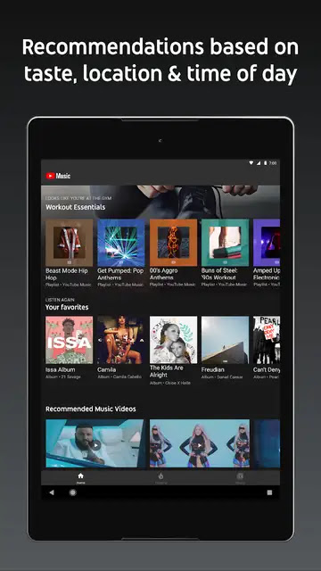 يمكنك استخدام YouTube Music مجانًا إذا كنت لا تمانع في الاستماع إلى الإعلانات كل بضع أغانٍ. يمكن استخدام الخدمة عبر تطبيق جوال أو مشغل ويب. بمجرد تسجيل الدخول إلى حساب Google الخاص بك، يمكنك الوصول إلى الخدمة المجانية دون الحاجة إلى اشتراك. يسمح لك بالاستماع إلى الأغاني ومشاهدة مقاطع الفيديو، مع الإعلانات العرضية.