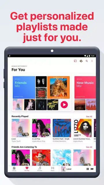 تحتوي Apple Music على مجموعة كبيرة من الموسيقى والاغاني وهي مصممة بشكل جذاب. لكن هذا شيء ربما يتوقعه الجميع من Apple. يمكن الاستماع إلى أفضل الفنانين عبر تطبيق الموسيقى والاغاني هذا. يغطي العرض أكثر من 90 مليون أغنية ويمكنك أيضًا حفظ عناوينك المفضلة للاستماع إليها في وضع عدم الاتصال.