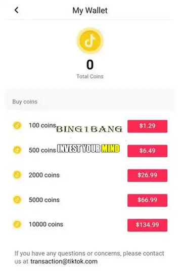 تختلف قيمة النقاط التيك توك وتعتمد على أسعار الصرف. في وقت كتابة هذا التقرير، كانت تكلفة 100 عملة تيك توك 0.99 دولارًا أمريكيًا، ويمكنك شرائها بمبالغ متفاوتة تصل إلى 10000 COIN في المرة الواحدة.