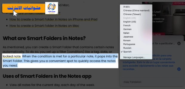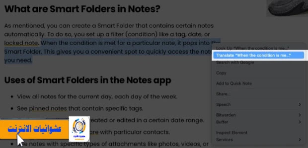 كيفية ترجمة جزء من صفحة ويب على نظام Mac