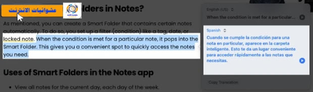 ربما ليست صفحة ويب كاملة تريد ترجمتها ولكن جزء معين. قد تكون جملة أو فقرة. يمكنك القيام بذلك باستخدام Live Text ثم الاستفادة من الخيارات الإضافية المتوفرة لديك.