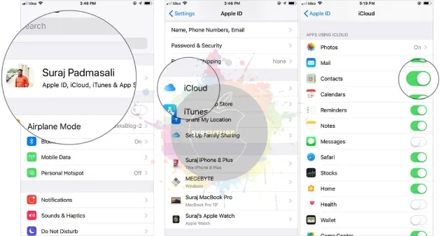 3. تصدير جهات الاتصال من وإلى iCloud