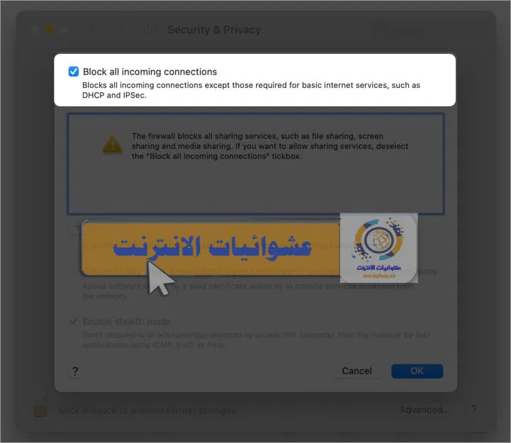 9. قم بتغيير إعدادات جدار الحماية على نظام Mac