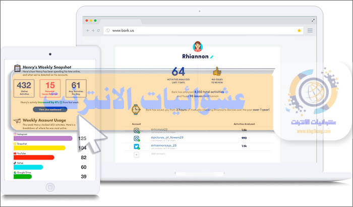يراقب Bark ما يزيد عن 40 خدمة وتطبيقًا على منصات مختلفة، ويمنحك تنبيهات تلقائية على البريد الإلكتروني والنص عندما تكتشف خوارزميات Bark المخاطر المحتملة، مثل علامات التنمر عبر الإنترنت والاكتئاب والمحتالين عبر الإنترنت ومحتوى البالغين والمزيد. تراقب الخوارزميات الخاصة به أربع مرات أكثر من أي تطبيق آخر مشابه.