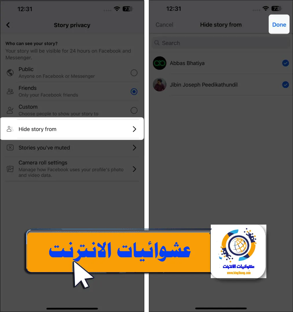 - كيفية كتم قصة الفيسبوك لشخص ما.