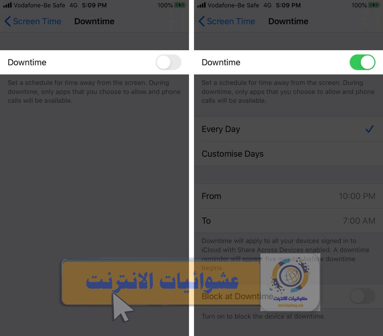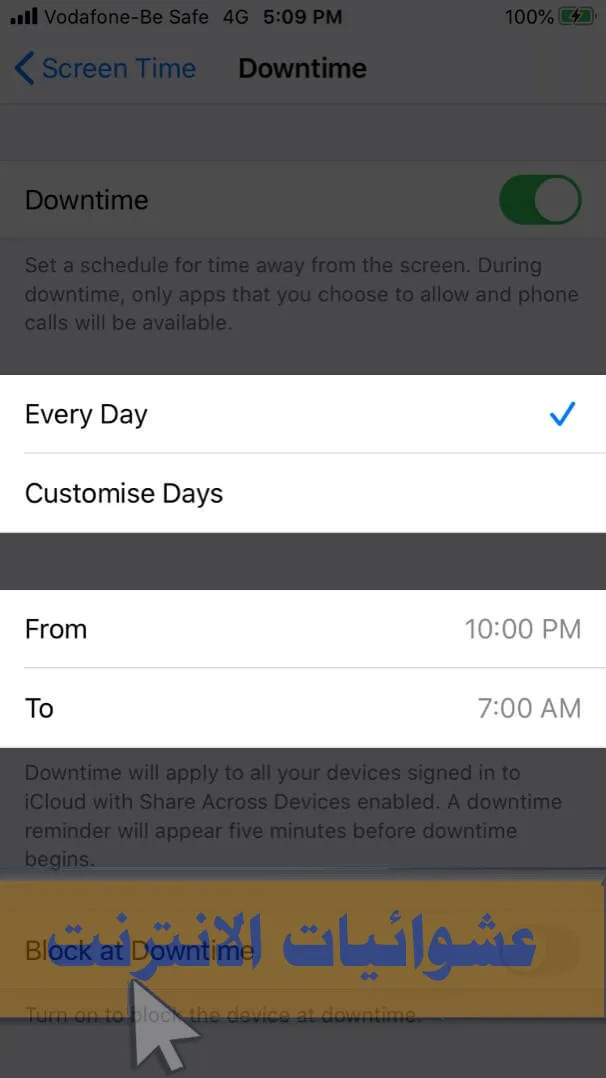 إذا كنت تخطط لتقليل وقتك أو وقت طفلك، فيمكنك تشغيل وقت التوقف لإيقاف تشغيل الجهاز في وقت معين. علاوة على ذلك، يمكنك أيضًا تخصيصه لأيام معينة.