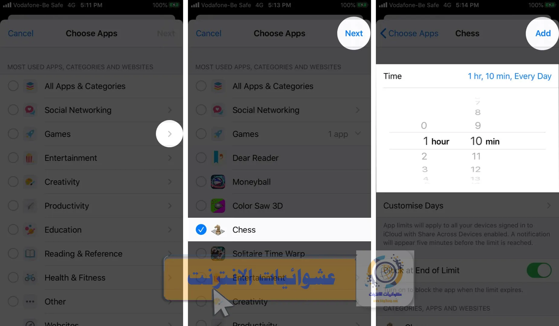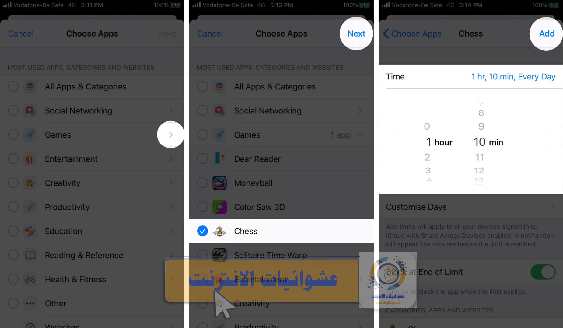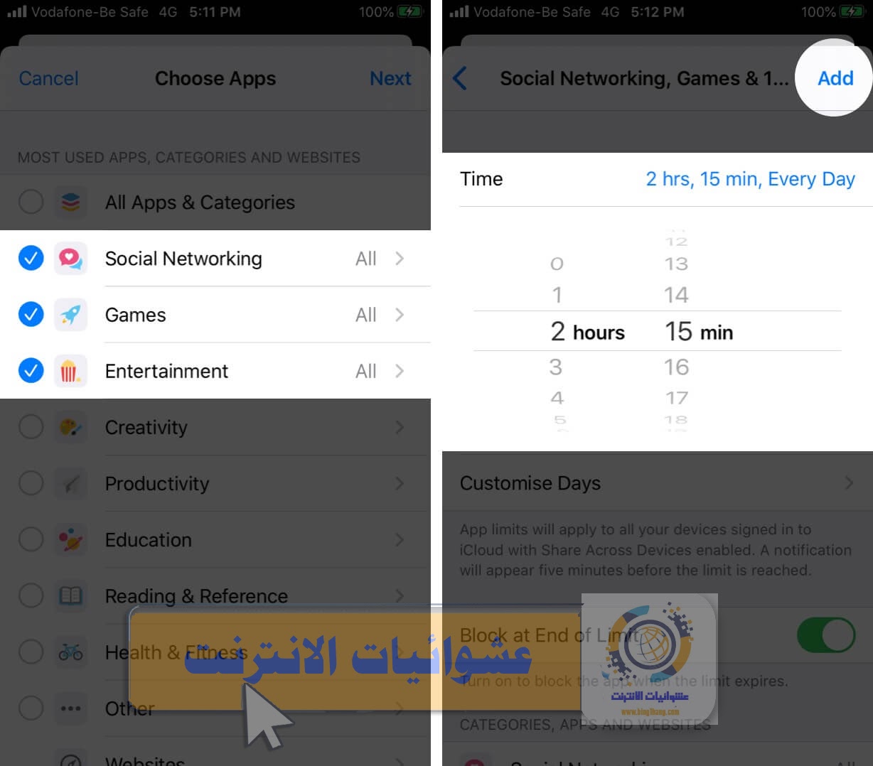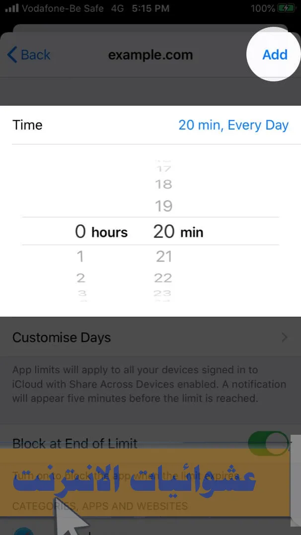 - قم بتعيين حدود زمنية يومية لمواقع الويب ذات حدود التطبيقات.