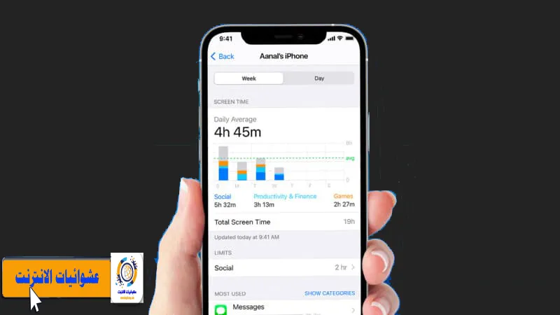 - أنت الآن داخل Screen Time على هاتف iPhone الخاص بطفلك.