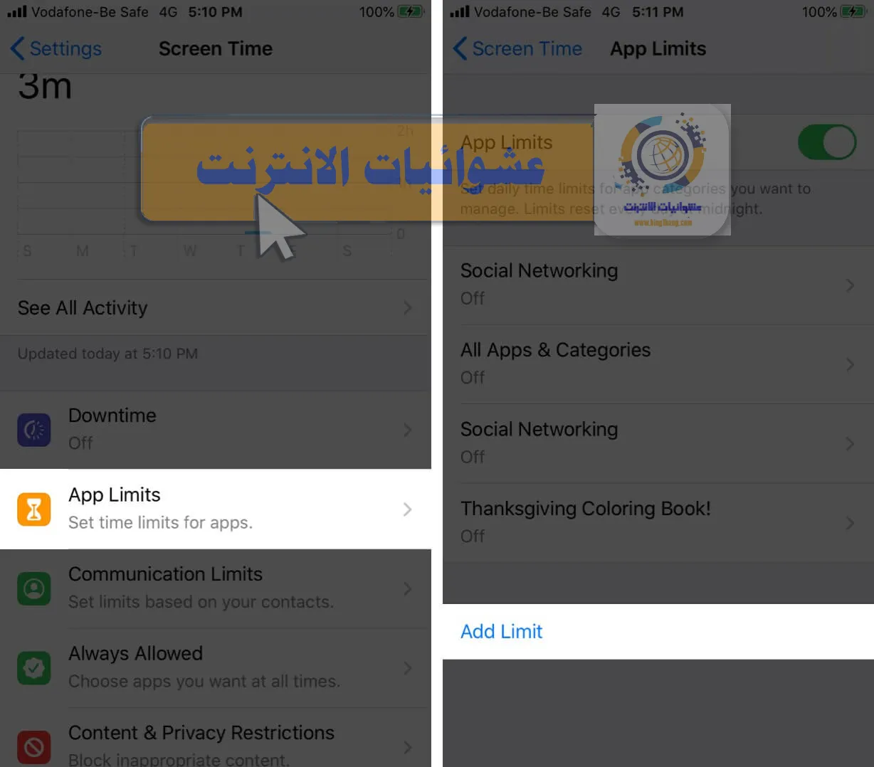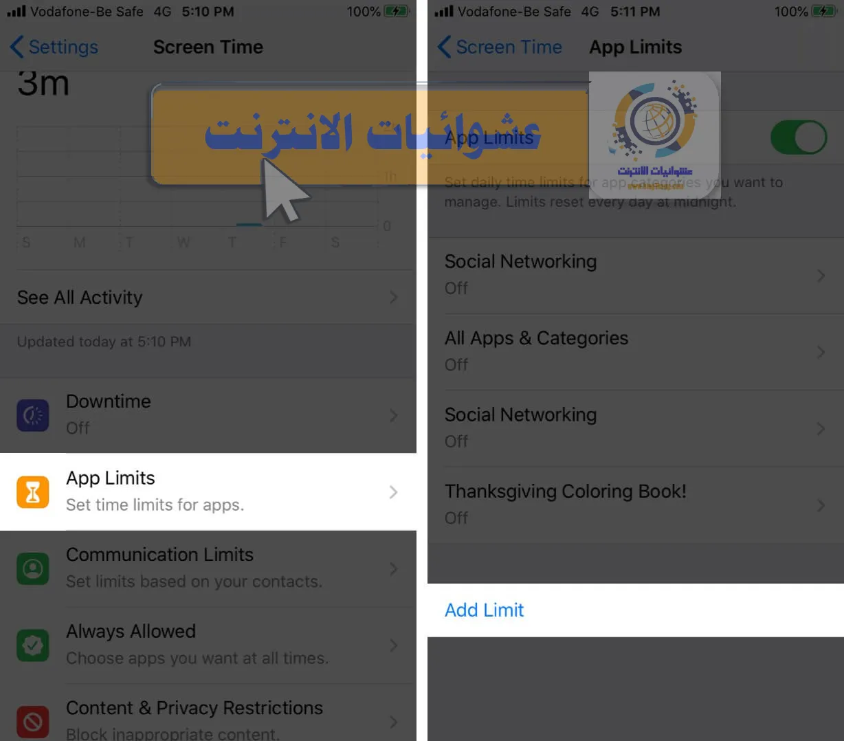 - كيفية تعيين حدود زمنية يومية لتطبيقات معينة باستخدام حدود التطبيقات.