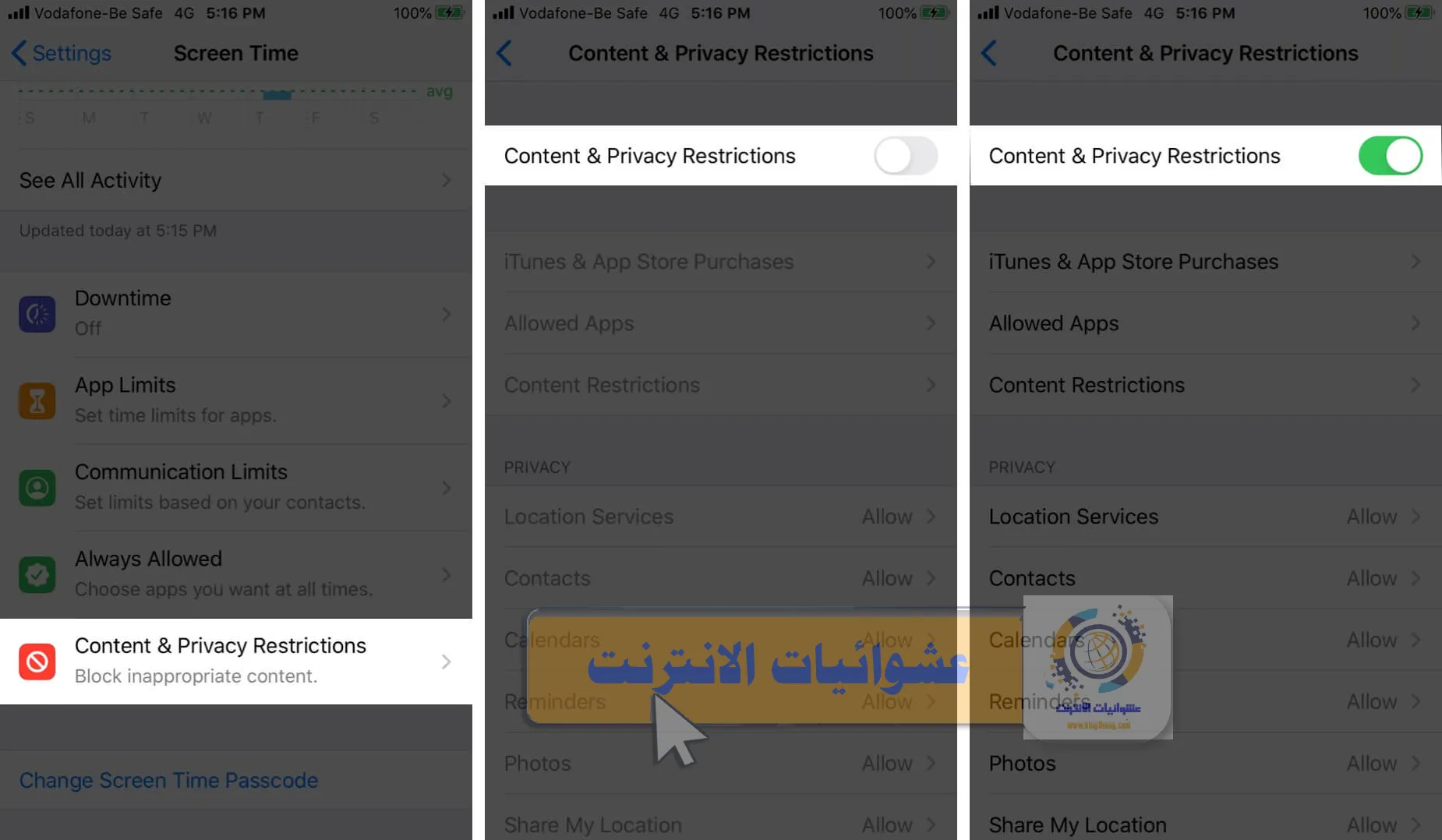 - قم بتشغيل قيود المحتوى والخصوصية لأجهزة iPhone وiPad.