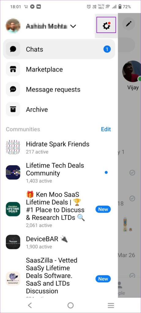 الخطوة 1: افتح تطبيق Messenger واضغط على أيقونة النقاط الثلاث في الجزء العلوي الأيسر.