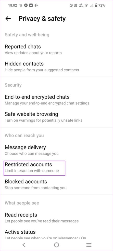 كيفية رؤية الأشخاص وإلغاء تقييدهم من إعدادات Messenger