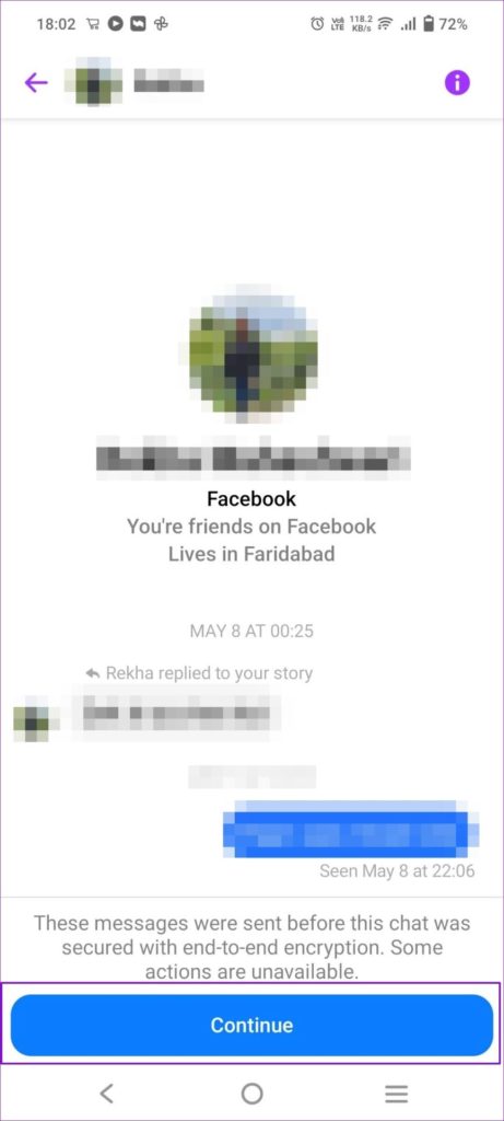 الخطوة 4: انقر فوق "متابعة" > "إلغاء التقييد" . يجب أن ترى الدردشة، وسيعود الشخص إلى قائمة الدردشة المعتادة.